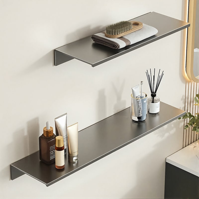 6 avis pour Étagère Murale MINIMALISTE Salle de bain – Aluminium Spatial | Fixation avec ou sans perçage